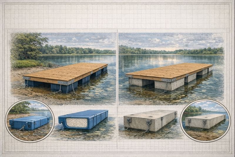 Pontoninis lieptas sudarytas iš atskirų modulių – pontonų, kurie jungiami į vientisą konstrukciją. Atsižvelgiant į kliento poreikius ir vandens telkinio ypatumus, siūlome skirtingų tipų sprendimus. Pagal pontonų medžiagą yra skiriamos dvi lieptų rūšys: